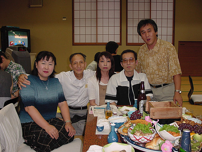 斉藤先生、小野恵子さん、旧姓渡辺玲子さんに、村田実君、磯部次男君が加わり記念撮影。