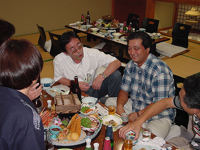 赤ら顔のお医者さん、伊賀芳朗君と、横幅が倍になった旧姓中村栄作君、右手前は矢内照男君の頭。