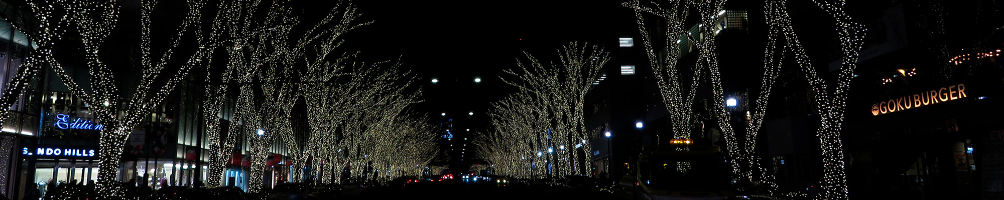 Looking toward Sanyabori at night, it looks like this. It's pitch black, but in modern times there are many lights such as street lights, so it's too bright.