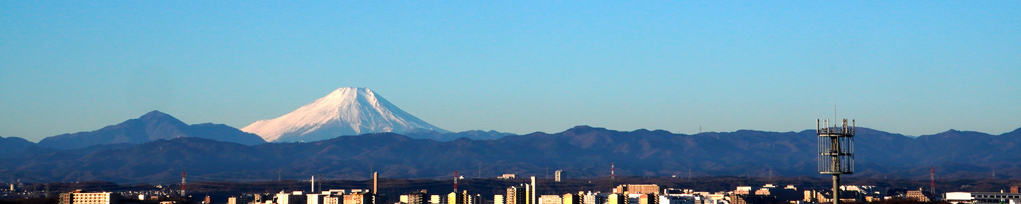Beyond his line of sight is the metropolitan Oshima Komatsugawa Park, and to the north and south of it is a forest of metropolitan housing and other buildings.