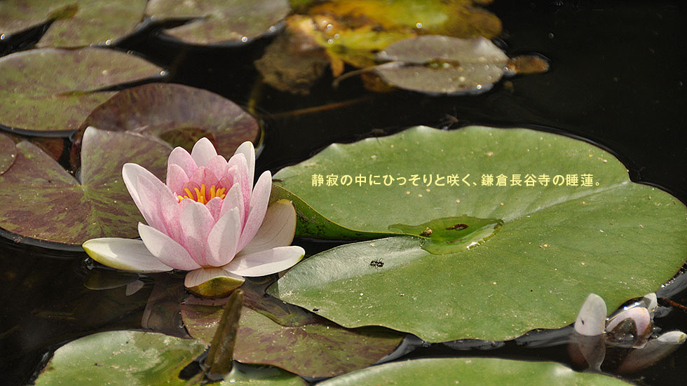 観光地鎌倉の長谷寺には、専門庭師によってよく手入れされたたくさんの花々が公開されている。有名な紫陽花はもちろん、それ以外にも季節に応じてたくさんの花が楽しめるのが嬉しい。その庭の片隅の池のさらに片隅、ひっそりと咲く睡蓮は、なんとも言えぬ、楚々とした美しさを放っている。