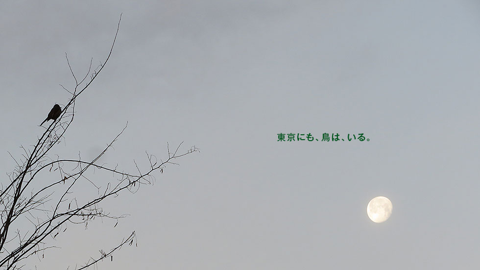 2019年春、月がいちばん大きく見えるスーパームーンの48時間後の未明、飛び始めた、おそらくオナガであろう鳥と一緒に撮った一枚で、本当に月が美しいと思えた瞬間だった。古から月に様々な名前をつけ接してきた日本人の、美的感覚に、少しだけ触れた気がした。